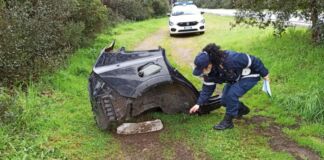 Infernetto, pezzi di auto in pineta. Intervento della polizia locale