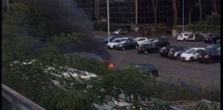 VIDEO – Tor di Valle, auto in fiamme vicino alla stazione