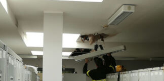 (FOTO) Crolla il soffitto negli spogliatoi della municipale. Intervento dei pompieri