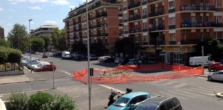 Fiumicino, auto sprofonda in una voragine