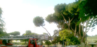 Ostia, pino minaccia di cadere sulla chiesa di Stella Maris