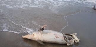Ostia, delfino morto spiaggiato al Curvone