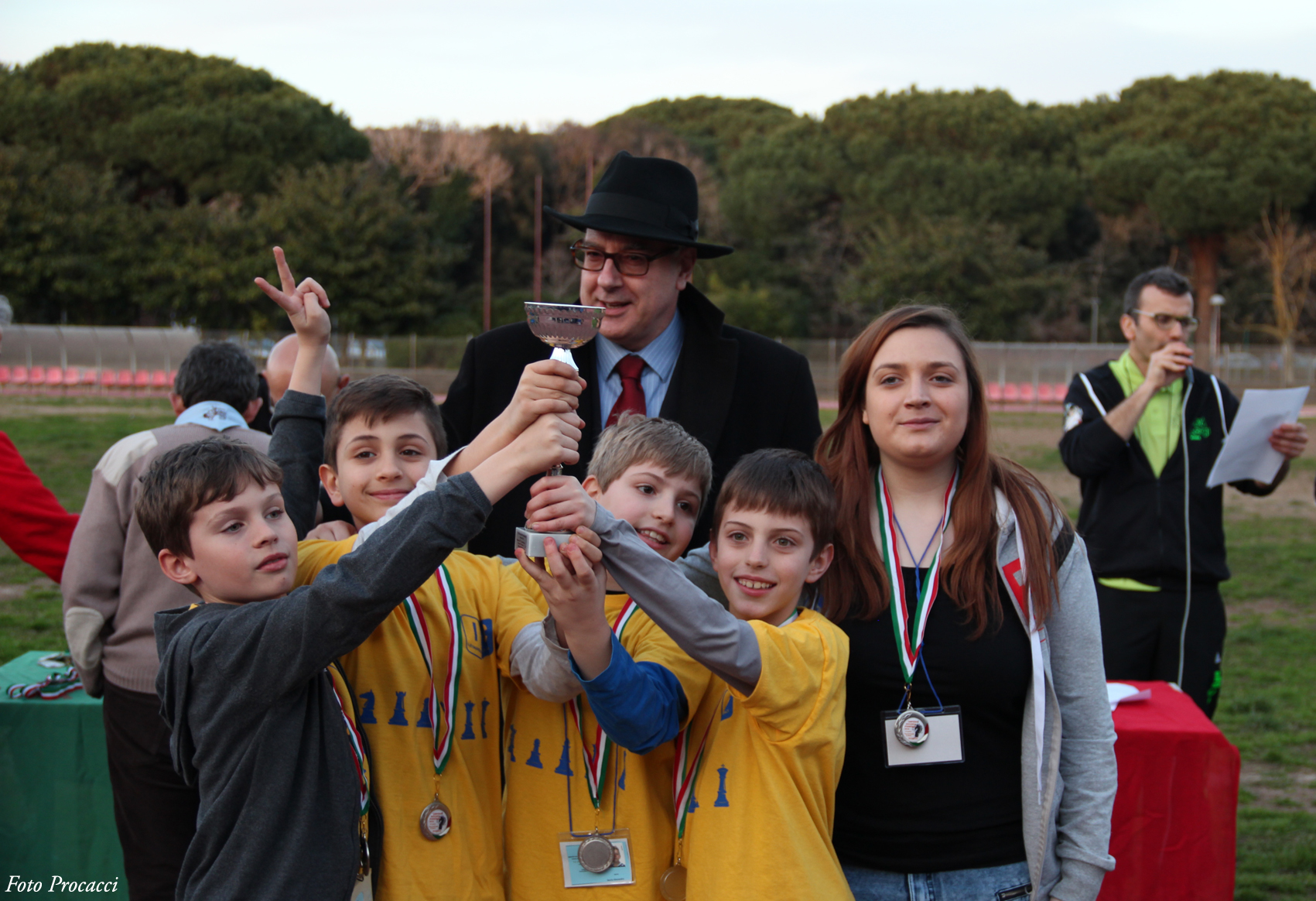Una delle squadre vincitrici premiate dal presidente Maggi
