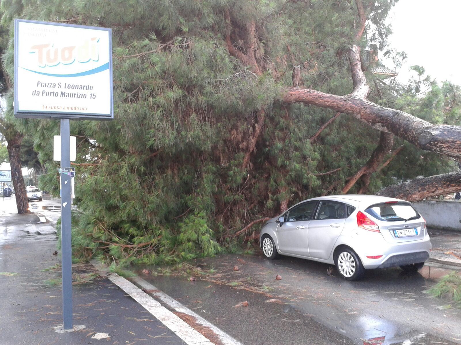 albero su auto via di acilia