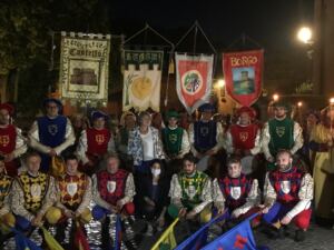 Ad accogliere i presenti, i figuranti del Palio di Ostia Antica con gli sbandieratori a sottolineare la particolarità storica del Borgo.