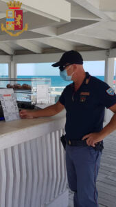 Durante il servizio, i poliziotti hanno verificato che gli avventori accedessero nei locali previo controllo della temperatura corporea e sanificazione delle mani. Tale attività è stata effettuata anche con l’impiego di vigilanti privati assunti dai gestori, tale da evitare accessi abusivi o sregolati sulla spiaggia.