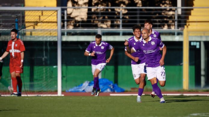 I biancoviola partono bene riuscendo a gestire il possesso del campo e al 15° Vianni inizia la serie d’attacco con un traversone dalla sinistra, Felici è pronto sul secondo palo ma il portiere del Chieti para. Ma non ci vuole molto per andare in rete ed è Spinosa che entra in area e fulmina il numero uno avversario per l’1-0.
