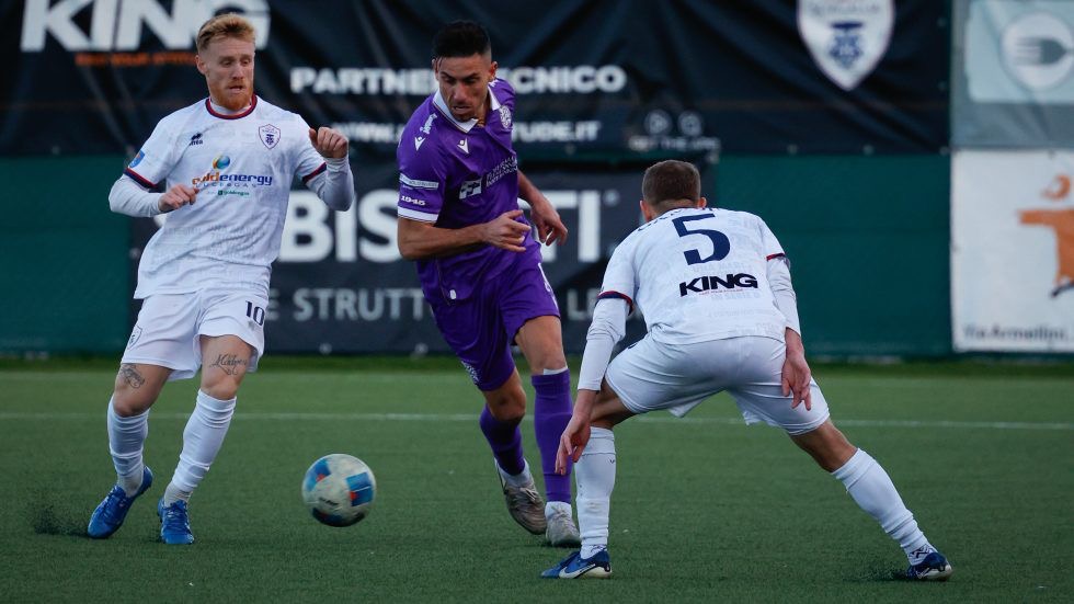 Sembra tutto fatto e invece al quinto minuto di recupero arriva la prodezza di Tomba che, su una mischia in area biancoviola, sulla sinistra trova un mancino al volo ad incrociare che si infila imprendibile sotto l’incrocio dei pali opposto.