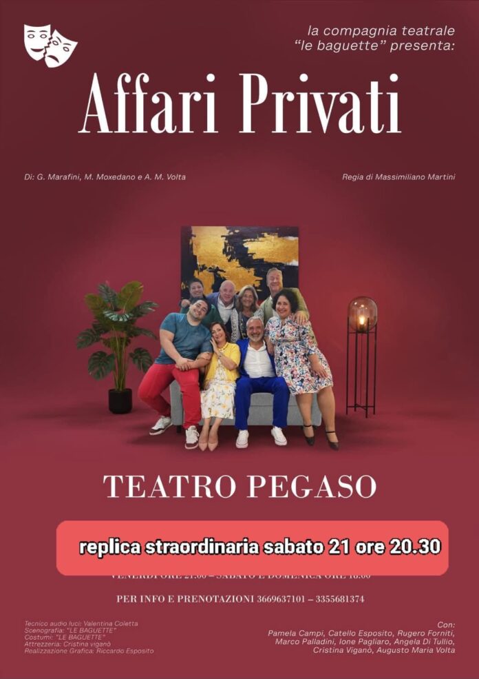 Per il prossimo week end la Sala Massimo Troisi propone “Affari privati” di Giuseppe Marafini e Maurizio Moxedano, con la regia di Massimiliano Martini.