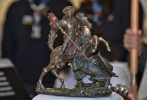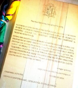23/04/2026 – La sovrintendenza del parco archeologico di Ostia Antica ha affisso presso la chiesetta di Sant’Ercolano, Ostia Antica antistante cimitero, lo scudo ligneo con il quale il Vescovo e i capi scout dei gruppi del territorio di Ostia hanno celebrato insieme il San Giorgio.