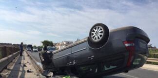 Ardea, auto si ribalta per evitare un animale
