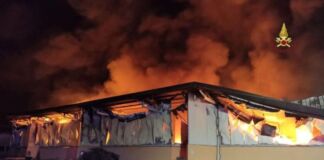 Pomezia, in fiamme capannone in via di Valle Caia